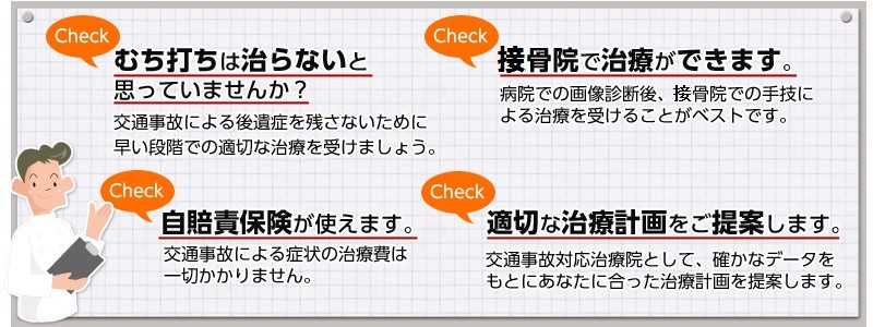 交通事故の治療は早ければ早いほど治療期間も短くて済むのです。