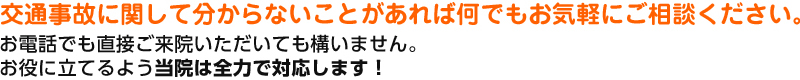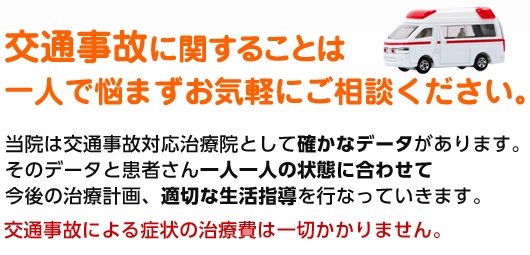 自賠責保険が使えますので窓口料金の患者さん負担はありません。